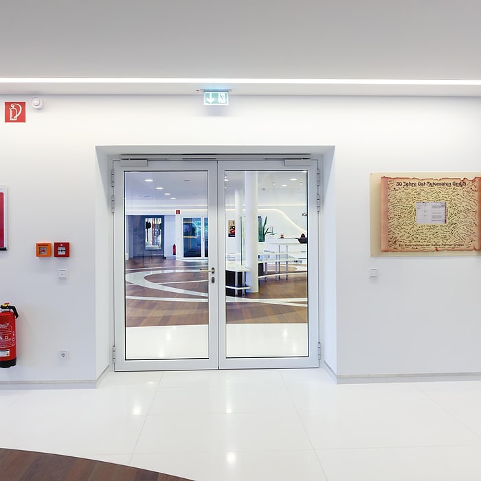 El sistema de cierrapuertas TS 93 con guía deslizante establece nuevas pautas en la arquitectura, y la acreditada tecnología dormakaba con el disco de levas en forma de corazón brinda la máxima comodidad de paso.
